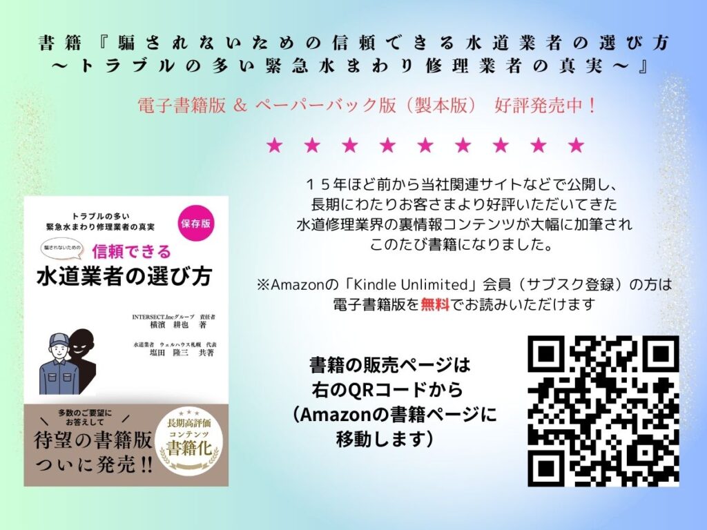 15年以上前から当社関連サイトなどで公開し、長期にわたりお客さまより好評いただいていた水道修理業界の裏情報コンテンツが大幅に加筆されこのたび本になりました。