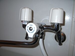 近年の新築住宅ではほぼ使用されませんが、上画像のように土台部分が横に幅広のベース部分がある水栓は、交換に手間がかかるモデルになります。