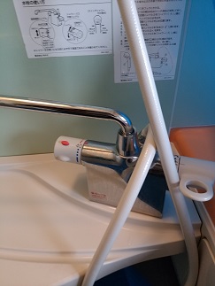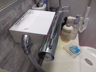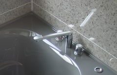 別な構造の浴室混合水栓としては、上写真のようなデッキ型(壁ではなくユニットバスの洗い場側の一部を土台にして設置されているモデル)もあります。