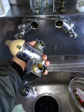 流し台裏側に通っている水とお湯の配管に、見えない箇所で接続されていることがほとんどですので、流し台自体を取り外したり、水道配管の部分交換も併せておこなわなければいけないことも多く、他の形状の混合水栓交換よりも割高になってしまいます。