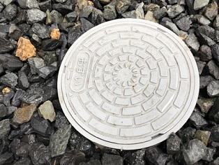 ↑ こちらはお住まいの外側に設置されている塩ビ製の排水マス(敷地内のマンホール)です。