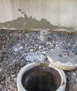 ↑ 古いお住まいの場合には塩ビの排水マスではなく、大型のコンクリート桝(石マス)が設置されています。