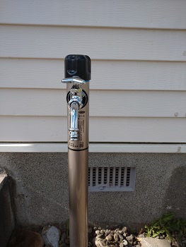 近年はお外の散水栓は画像のような一体型の水栓柱が使われることが多いです。