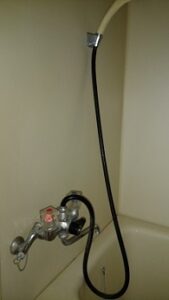 お風呂のシャワー蛇口が古くあちこち水漏れしているため、この機会に新しいタイプの混合水栓へ交換してほしいというご依頼をいただきました。