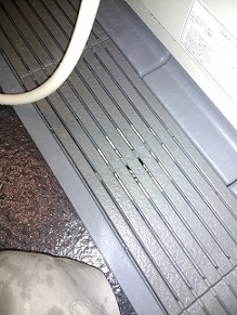 写真のように排水口が細長いカバーで覆われているような構造のユニットバスで、水を使い続けているとみるみる間にカバー部を越えて溢れてきて、浴室外まで流れ出ていきそうになる状況でした。
