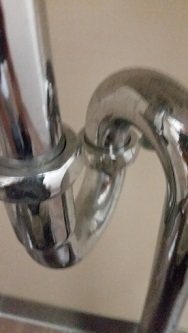ほとんどの洗面台ではプラスチック製の排水器具を使用されていますが、こちらのお宅では金属製のものが使用されていました。