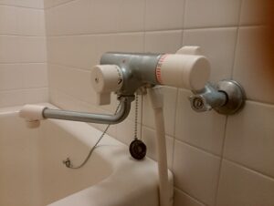 お風呂の2ハンドルタイプ(水とお湯のハンドルが別々になっている混合水栓)でしたが、お湯側のハンドルを回して開栓すると、途端に水がボタボタ落ちてくる状態でした。